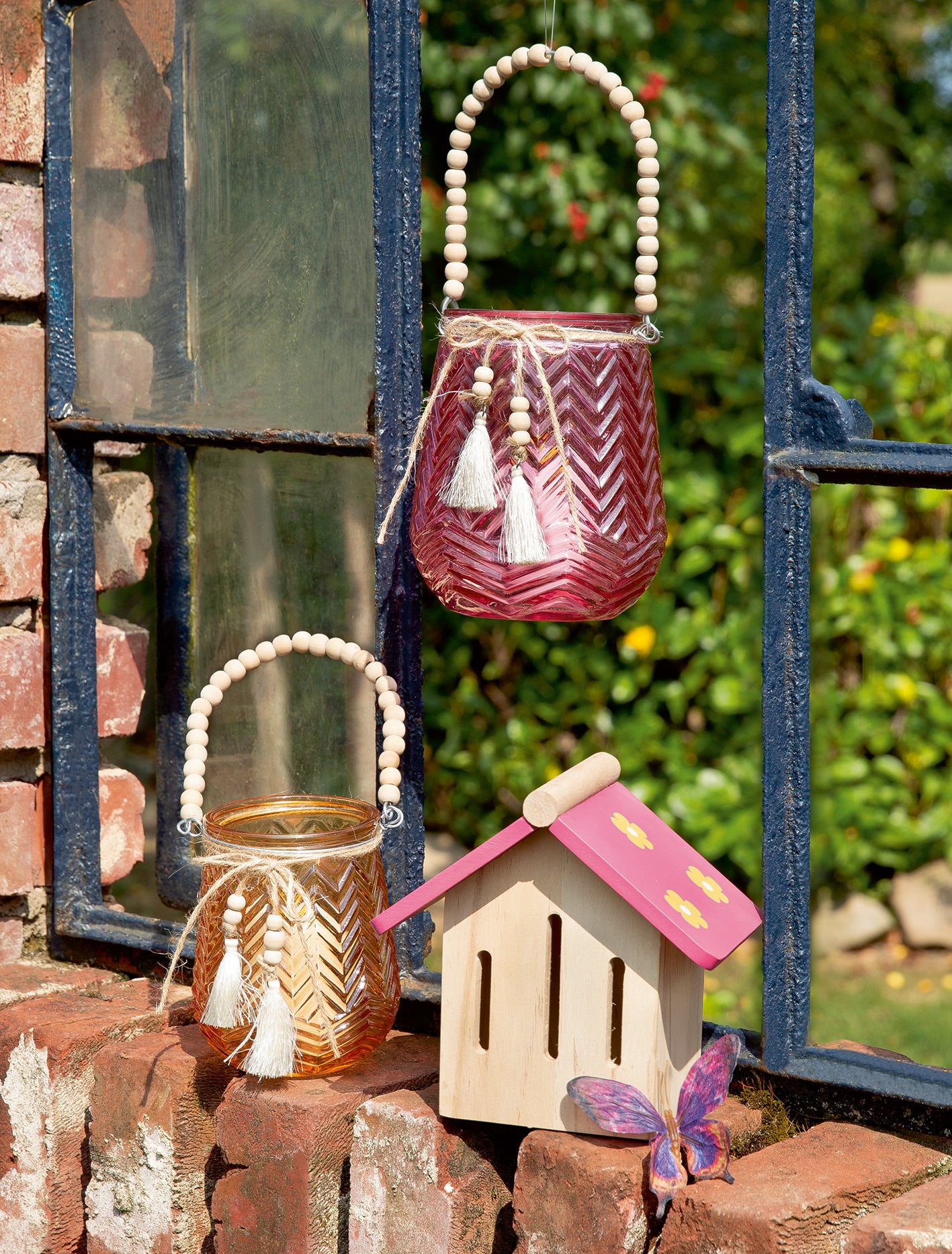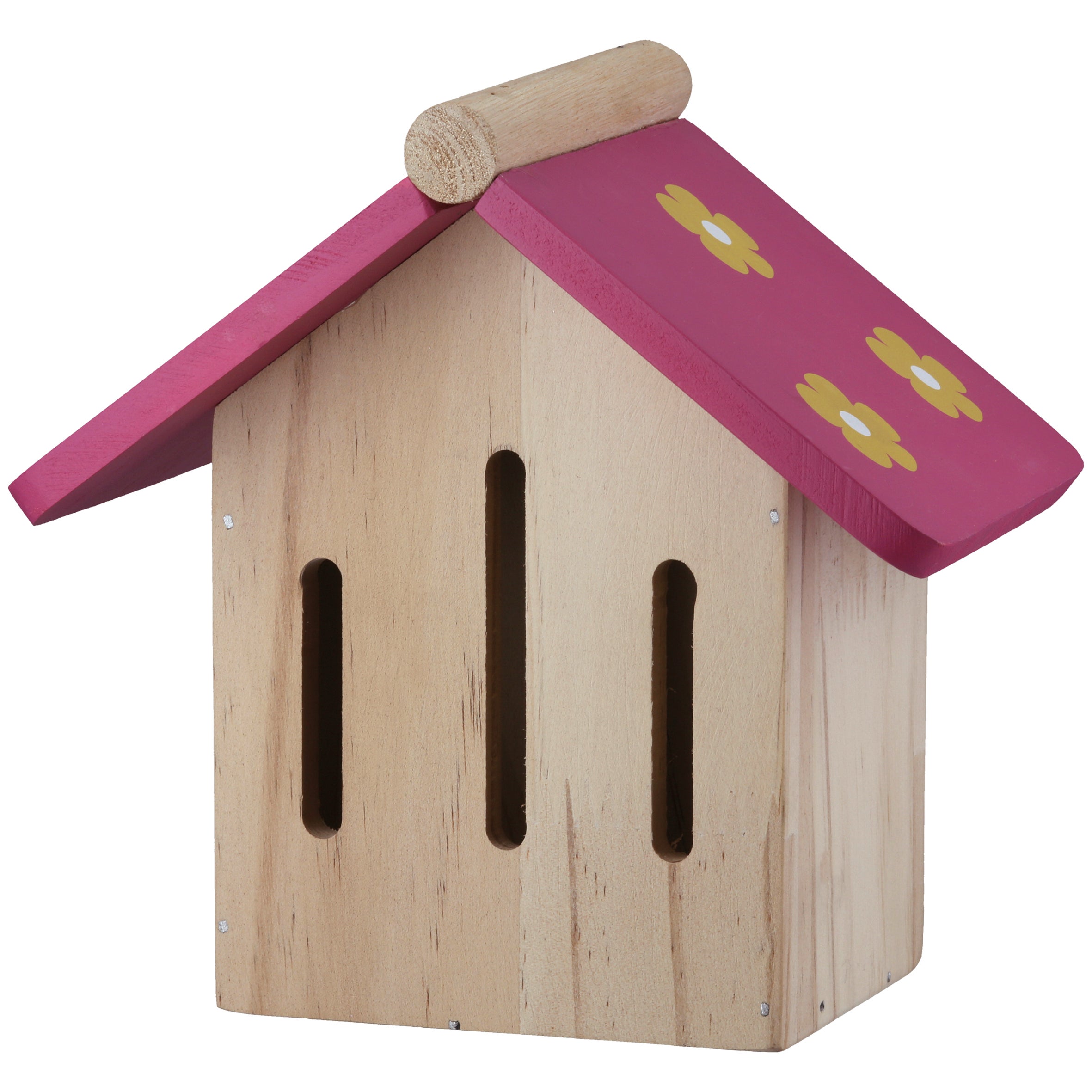 Insektenhotel, Haus, "Farfalla", Blumenmuster, Holz, rosa, naturfarben