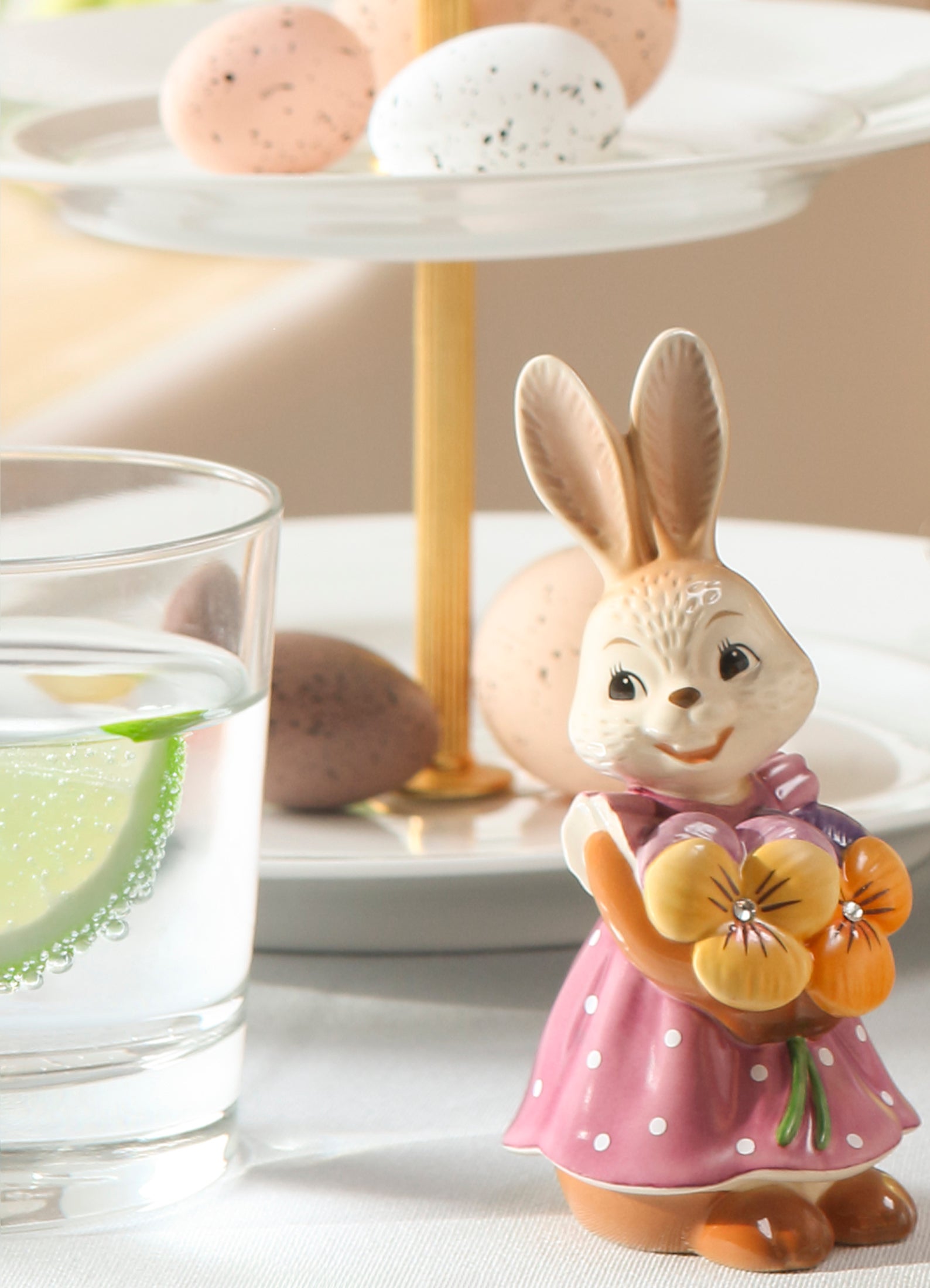 Diese bezaubernde Hasenmädchen bringt fröhliche Frühlingsstimmung in jedes Zuhause. Mit ihrem liebevoll gestalteten pinken Kleid, einem bunten Blumenstrauß in der Hand und einem strahlenden Lächeln im Gesicht versprüht sie pure Lebensfreude.