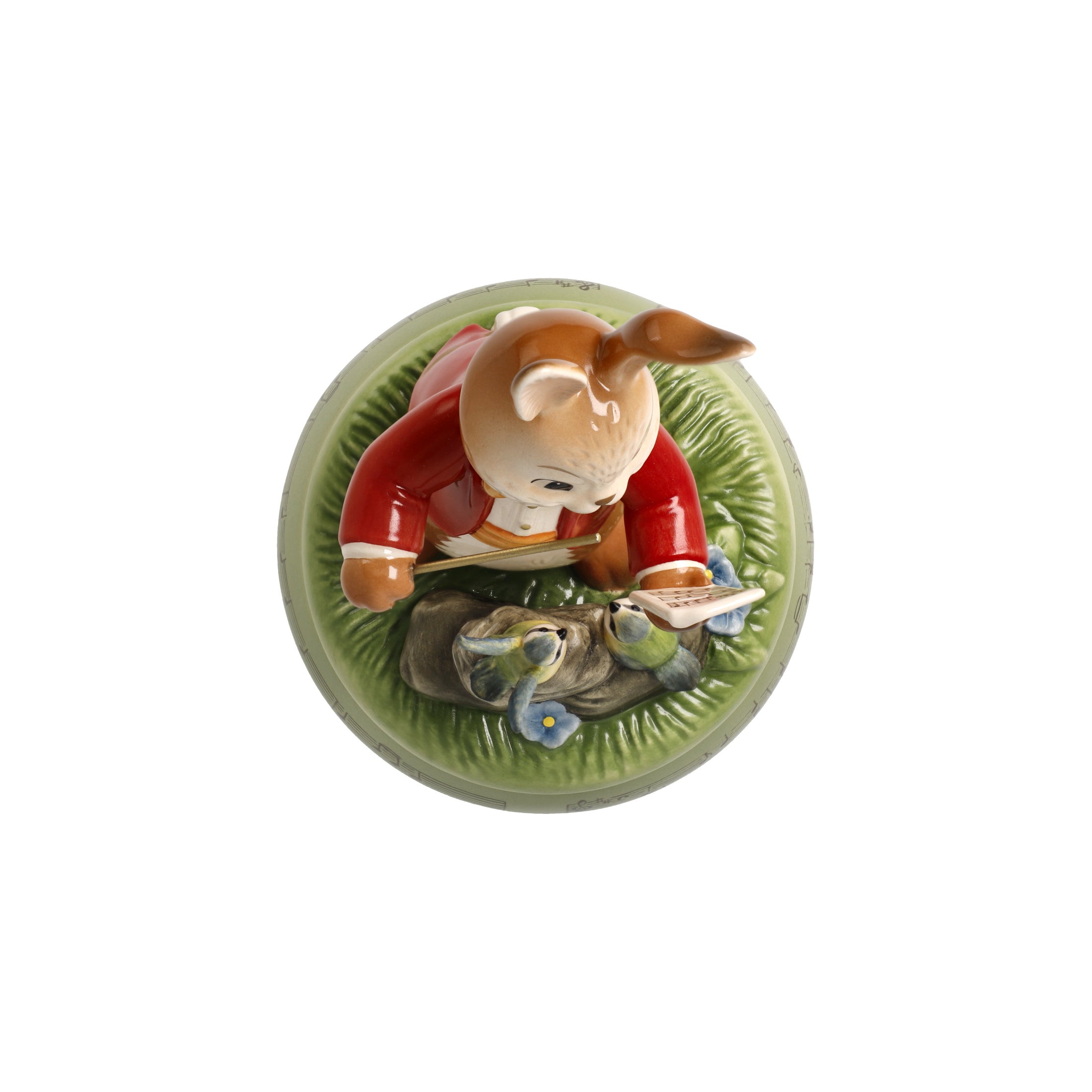 Und Musik ab! Der kleine Oster-Dirigent stimmt „Alle Vögel sind schon da“ an – und schon zwitschert der Frühling los! Einfach die Spieluhr drehen und die Melodie des Frühlingsklassikers genießen.