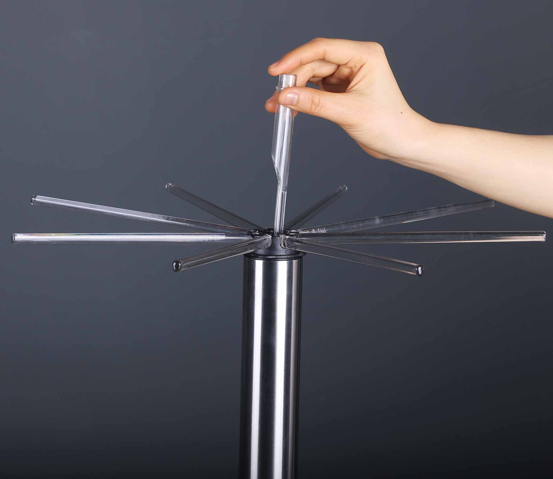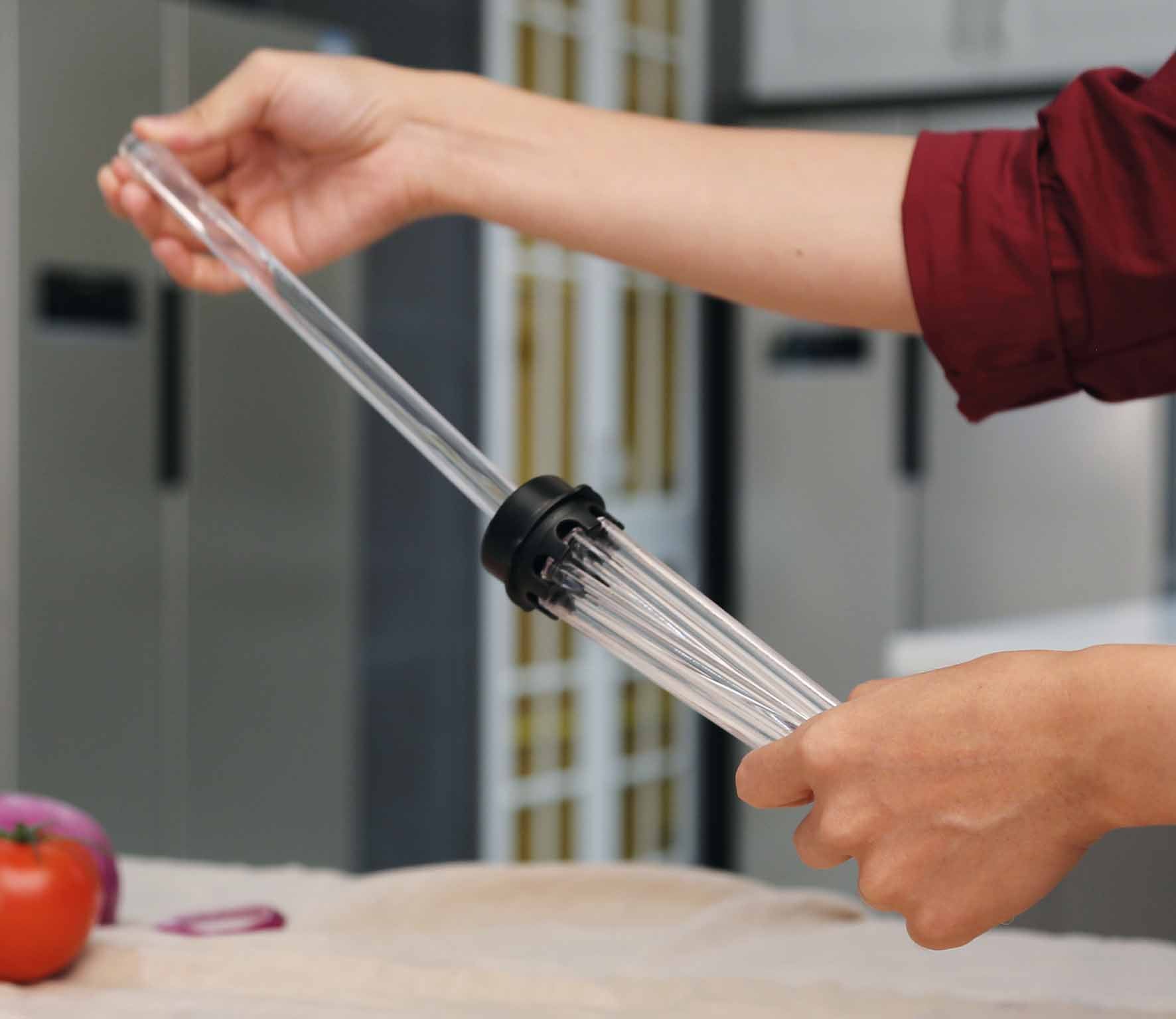 Hausgemachte Nudeln begeistern die ganze Familie. Doch wohin mit Tagliatelle oder Spaghetti, bevor es in den Kochtopf geht? Auf den Nudeltrockner PLUS PASTACASA von KÜCHENPROFI. Acht Arme aus rostfreiem Edelstahl bieten genügend freie Fläche, damit die Nudeln sich nicht berühren und verkleben. Im Gegensatz zur Lagerung auf einem Backblech oder dem Küchentisch werden die Nudeln gründlich getrocknet, da die Luft optimal zirkuliert. Das horizontale Profi-Gerät blockiert keine Arbeitsfläche und lässt sich nach Gebrauch platzsparend zusammenklappen. Es ist stabil verarbeitet und steht sicher auf drei Füßen. Mit dem beiliegenden Mehrzweckstab können Sie die Teigplatten schneiden und Ihre frische Pasta transportieren.
